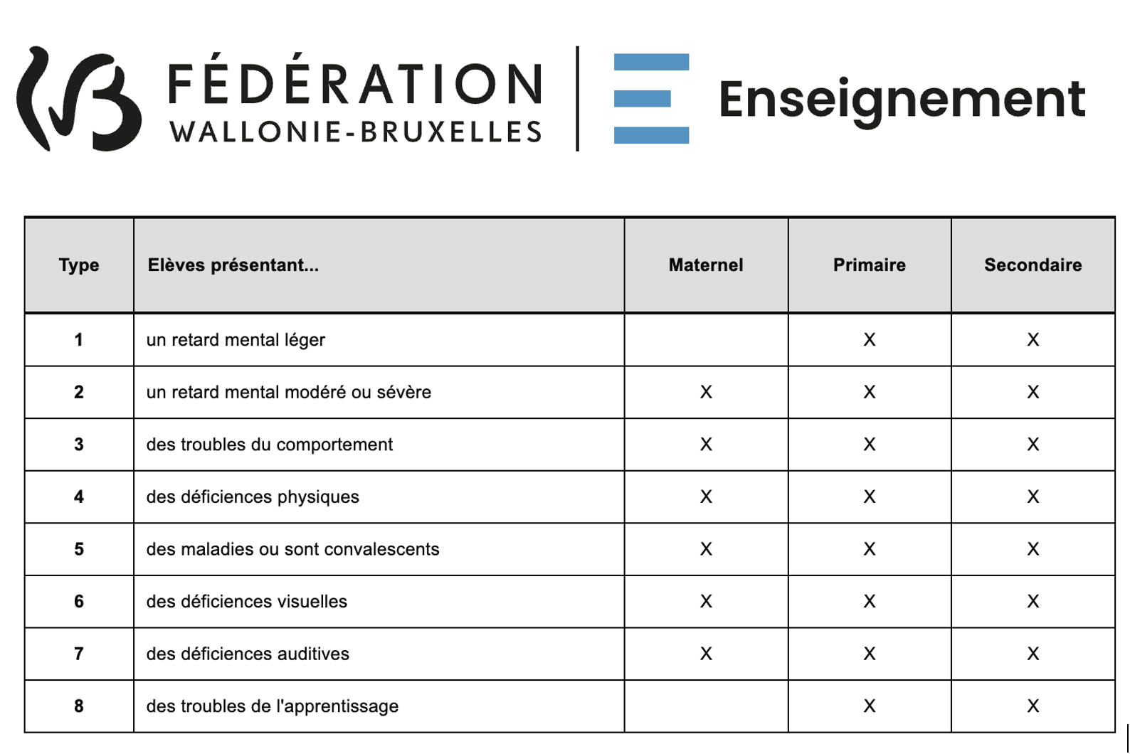 Mme Stéphanie Cortisse, Députée.- Madame la Ministre, l'article 15ter du Décret du 3 mars 2004 organisant l'enseignement spécialisé prévoit que "Le Gouvernement peut accorder une dérogation à une école d'enseignement fondamental ou secondaire spécialisé qui accepte d'inscrire un élève relevant d'un autre type d'enseignement spécialisé que celui ou ceux qu'elle organise ou d'une autre forme d'enseignement spécialisé que celle(s) qu'elle organise, et ce en vertu d'une situation exceptionnelle notamment motivée par un manque d'offre d'enseignement spécialisé empêchant toute possibilité de scolarisation et sur avis favorable du Conseil général".